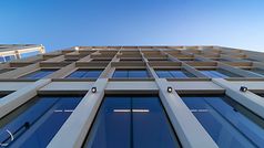 The building envelope is intended to evoke Sunderland’s rich marine and industrial heritage. At ground level, reconstituted stone-clad columns and beams complement the nearby Edwardian magistrates court, while generous double-height glazing forms a strong connection to the surrounding public realm. On the upper floors, slim 400mm deep aluminium profiles inset with floor-to-ceiling glazing sets up a strong rhythm across the façade. Using Schüco FW 60+ SG curtain walling, specialist contractor Dane Architectural Systems engineered bracketry to accommodate the 400mm deep fins, which span both vertically and horizontally. The fins are transformed into composite, insulated non-vision panels beside the near full-height glass vision areas, with floor spandrel panels above. Formed from Schüco profiles, the exoskeleton feature is secured back to the main curtain wall grid via a reinforced and concealed fixing arrangement.