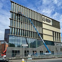 Comprising state-of-the-art research, laboratory, and teaching spaces, BDP’s Science and Engineering Building for Manchester Metropolitan University forms part of a larger redevelopment programme, which includes the refurbishment of the adjacent John Dalton Tower. Schüco curtain walling is used to expressive effect throughout the building – not least on its acute north west corner, where it is intended to evoke the precision, accuracy and technical proficiency of the scientific work taking place inside.