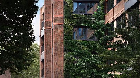 Designed by Barr Gazetas, Holbein Gardens is a redeveloped and extended 1980s commercial building located near London’s Sloane Square. Rated BREEAM Outstanding, the all-electric scheme provides 2,300 square metres of high-quality office space and includes retention of the existing façade, together with the introduction of full-height glazing and balconies, as well as extensive landscaping to increase biodiversity and employee wellbeing. In addition to reducing upfront carbon emissions, the building’s passive design strategy incorporates exposed concrete slabs for improved thermal mass, mixed-mode ventilation, on-site renewable energy generation, and blue roofs.